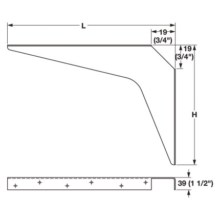 This Work Surface Brackets, Rigid, 8x12" (203x305mm) work station bracket from Hafele is designed for heavy duty jobs. This bracket is made from steel. This bracket features an 1/8" (3.175mm) thickness and over a 453.59 kg. (1000 lbs.) load capacity per pair. Larger sizes also feature cut outs for wire management. Pack includes 5 pairs.