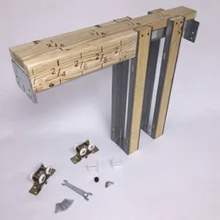 Hager Hager 9852 Heavy-Duty Kit offers complete Pocket Door Frame Kits. It can support 1-3/8” - 1-3/4” thick doors with a weight of up to 250 lbs, to be installed in a 2' x 6' wall. See the details below for more information