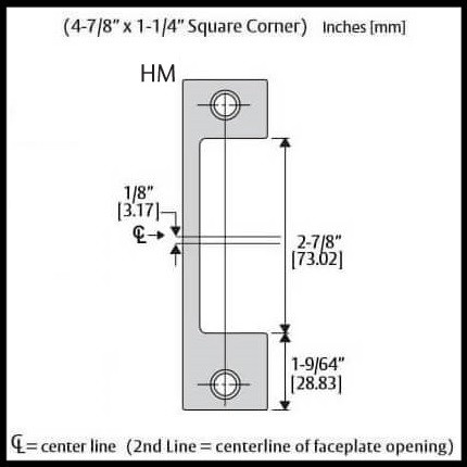 Faceplates fasten, embellish, and protect doors and electric strikes. It is the part that gets mounted onto the side of the door, surrounding the latchbolt. This HES HM Option faceplate is compatible for use with the HES 1006 electric strike.
