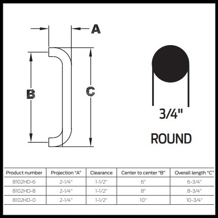 Ives 8102HD Straight Door Pull, 3/4" Round, Up to 10" CTC