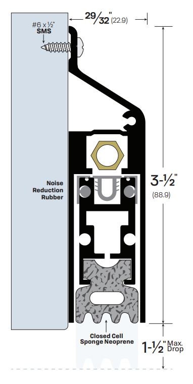 Legacy #7093 Extended Automatic Door Bottom, Heavy Duty, Sponge Neoprene, 1.5" Drop