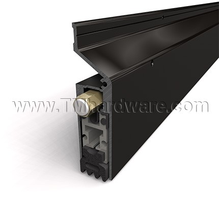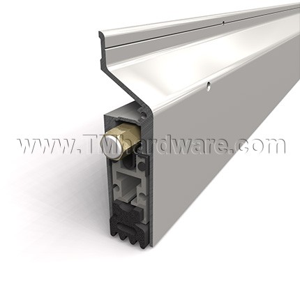 Legacy #7093 Extended Automatic Door bottom is fitted with a Heavy Duty mechanism and rubber gasket that can seal gaps up to 1.5". This model is surface mounted and features a a unique sloped top casing. Available in a selection of finishes and is custom cut to size.