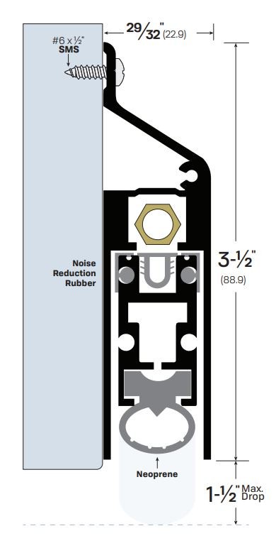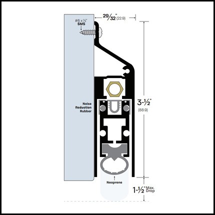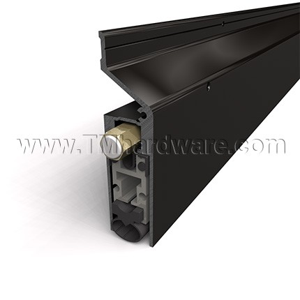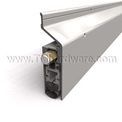 Legacy #7593 Extended Automatic Door bottom is fitted with a Heavy Duty mechanism and rubber gasket that can seal gaps up to 1.5". This model is surface mounted and features a a unique sloped top casing. Available in a selection of finishes and is custom cut to size.