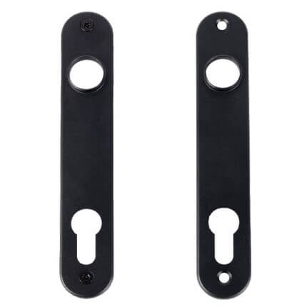 Lociniox 3025-HYB, cover plates made from anodized aluminum for handle hole and cylinder of Locinox insert locks. They attach transversely through the post. Screws are included. Available in Black and Silver finish.