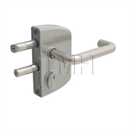 When using Locinox LPKQU2, Surface Mounted Anti-panic Gate Lock, just by turning the handle, anyone can head outdoors or escape from inside. By turning the cylinder, mechanical access from outside is always possible. Perfect latching and locking of the mechanism is made possible by the bolts' 3/4" continuous adjustability. A deadbolt made of solid stainless steel with a throw of 15/16" ensures a secure lock.