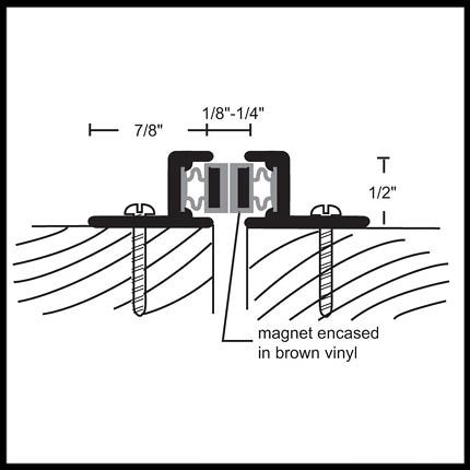 NGP 189 Magnetic Meeting Stile / Astragal Set is applied to the face of a double door to seal gaps up to .25". It is fitted with a magnetic seal encased in gray vinyl. Casing is made of aluminum and sized .5" x .875". Available in two anodized finishes, two mounting options and is custom cut to size.