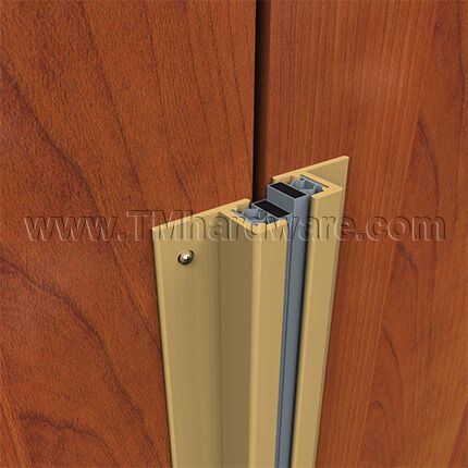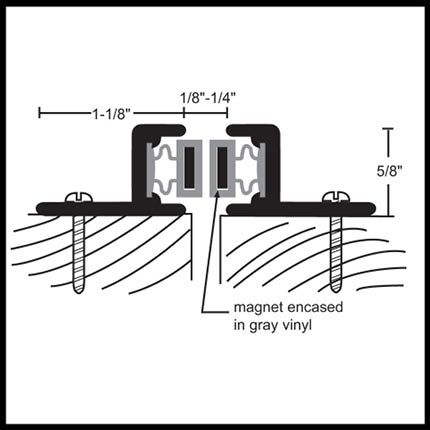 NGP 149 Magnetic Meeting Stile / Astragal Set is applied to the face of a double door to seal gaps up to .25". It is fitted with a magnetic seal encased in gray vinyl. Casing is made of aluminum and sized .625" x 1.125". Available in various anodized finishes, two mounting options and is custom cut to size.