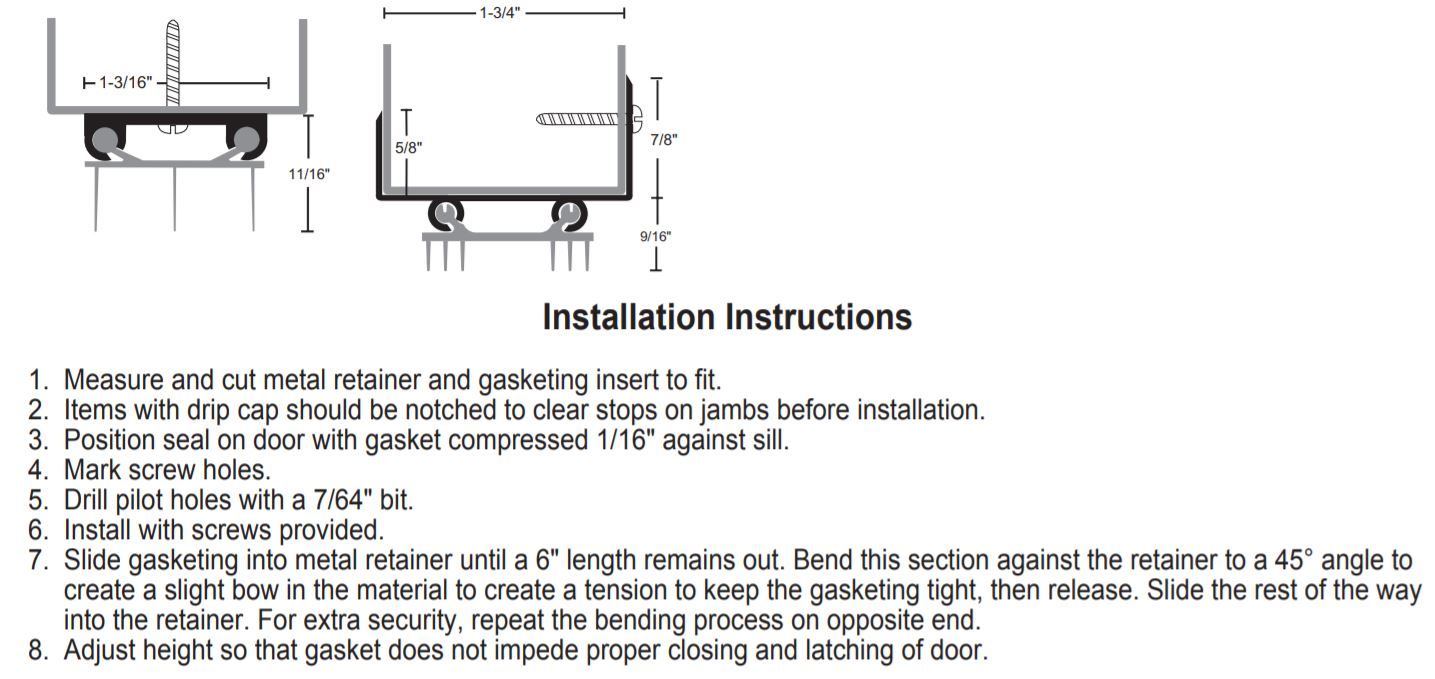 NGP 13T6 Door Shoe with L Shaped Aluminum Casing is ideal for protecting the bottom of doors while sealing the gap up to .5625". It is compatible with hollow metal doors 1.8125" thick. Comes with 2 thermoplastic triple fin seals. Available in two aluminum finishes and length is custom cut to size up to 48".