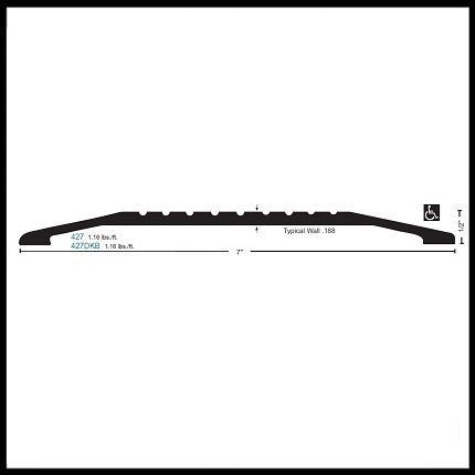 NGP 427 Utility Threshold has a width of 7" with a clearance of .5" which creates a barrier against dirt, dust, drafts and light infiltration. This threshold is wheelchair accessible. Available in choice of finishes and length is custom cut to size.