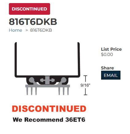 This item has been discontinued - For a similar item, see our NGP 36ET6 Door Shoe Sweep, U Shaped Aluminum with Two .5625" Thermoplastic Triple Fin Seals