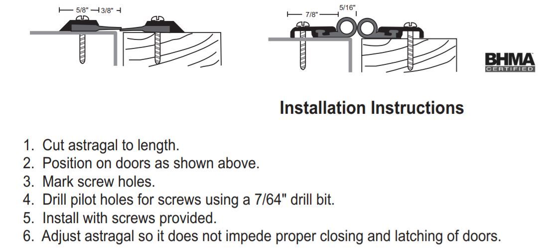 - Fire-rated Astragal Seals cannot replace any astragal required on the door by the door manufacturer to maintain its fire label