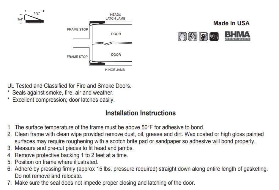 For additional weatherstripping, see our NGP 9500 Adhesive Weatherstrip, 1.5625" Wide PVC and Intumescent Seal