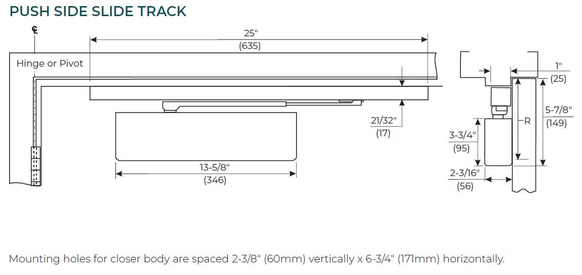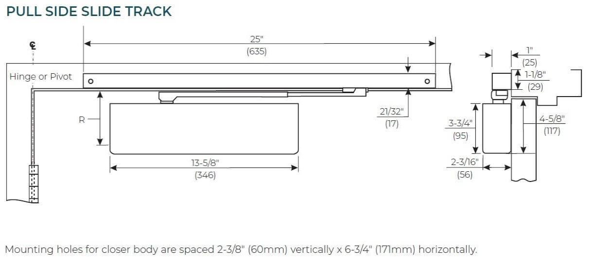 - Slide track - push or pull side mounting