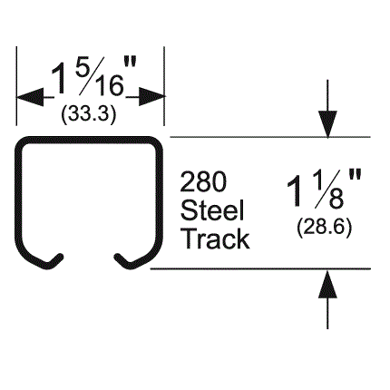 PC Henderson 280C Steel Box Track is designed for single, bi-parting, bifold and bypass door panels up to 200 LB. Available in a selection of lengths. Can be used with the H200PACK Sliding Hardware.