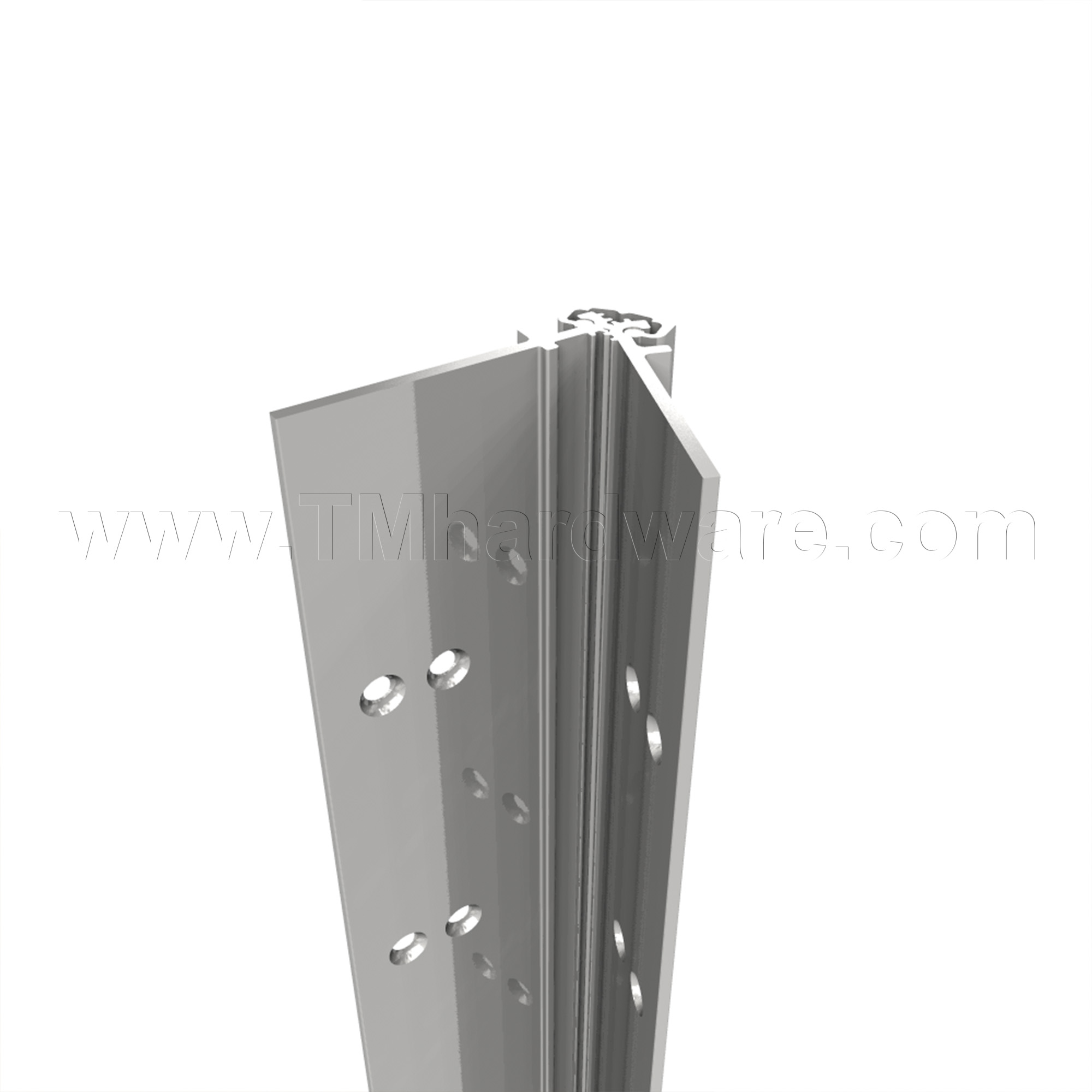 Continuous Hinges are designed to last the life of the building. The unique design distributes the weight of the door along the entire length of the frame. This Aluminum Geared continuous hinge utilizes a single gear section for the leaf and a separate gear section for the frame side of the door. Â