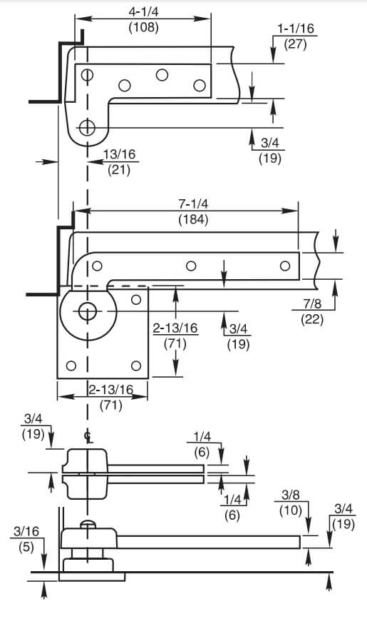 - 3/4" (19mm) offset (measured from centerline of pivot to face of door)