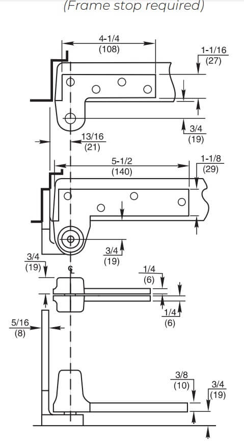 - 3/4" (19mm) offset (measured from centerline of pivot to face of door)