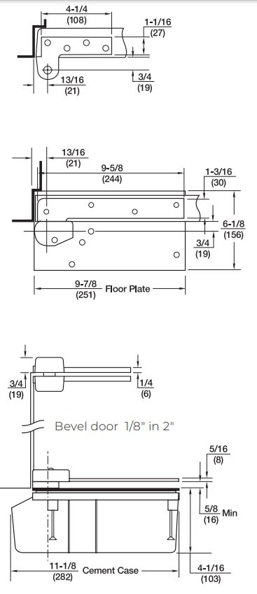 For optimal mechanical support and control of a door, the Rixson 27 Series, Floor Door Closer is one of the best options. For enduring performance and dependability, it is made to comply with the laws of physics. The floor and bottom arm support the door's weight. This works perfectly for standard door frame installation for interior or exterior doors weighing up to 450lbs.