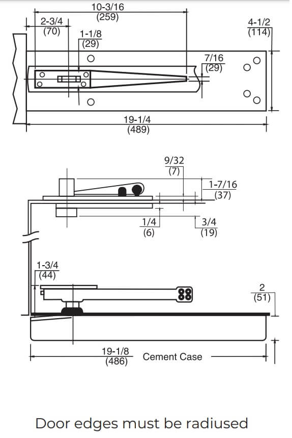 - Frame stop required on lock edge; if not supplied by frame manufacturer, Norton Rixson 60131 is recommended