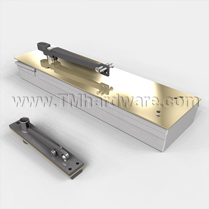 - Centering arm with adjusting screws in face of door (critical for double acting doors)
