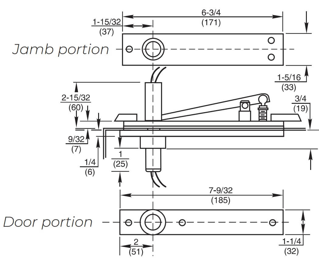 - Longer pivot pin throw engages in top of door 1-3/4" (44mm); ideal for locations where there is a fear of dramatic building settling