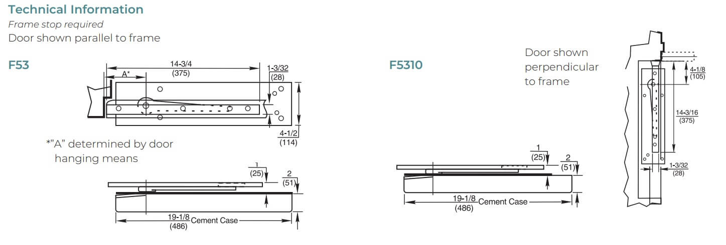 Rixson F53 and F5310 Series, Door Closer, Independently Hung