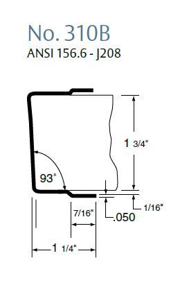 Rockwood 310B, Overlapping Door Edge, 93° U-Shaped, with Double Wing, 1-3/4" Doors, up to 8FT