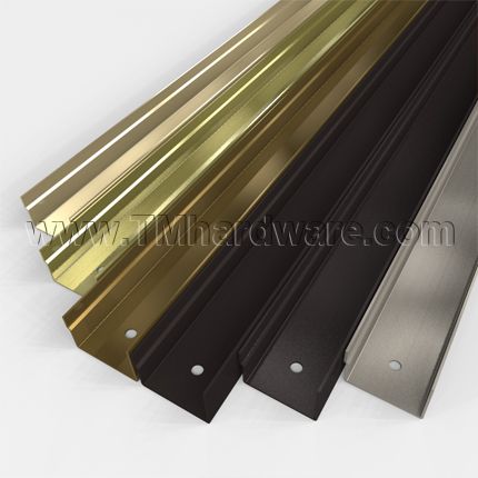 Rockwood's 93° U Shaped Overlapping Door Edge with Single Wing, is designed to protect the corners of the door. Designed for beveled doors. Door Edge Size 1-3/4" x 1-1/4". Overlapping wing size 7/16" wide with a 1/16" offset from the door. Available in a variety of finishes and lengths up to 42".