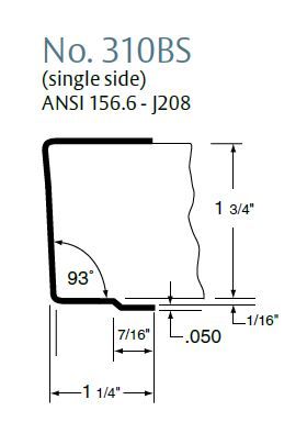 Rockwood 310BS, Overlapping Door Edge, 93° U-Shaped, with Single Wing, 1-3/4" Doors, up to 8FT