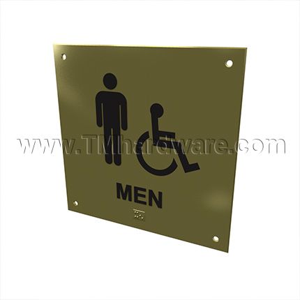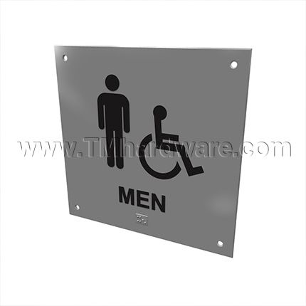 Rockwood ADA Tactile Sign with Braille, Men and Handicap Accessible #BF687 comes in a variety of materials and finishes. Sign includes raised characters and Grade 2 Braille translation. Size 8" x 8".Â