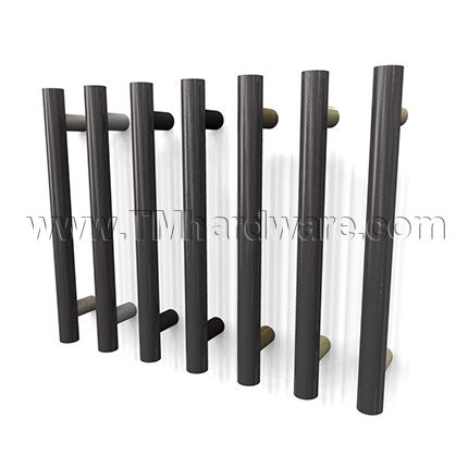 Rockwood NoirTek RM3900 - RM3920 Straight Door Pulls, Black Anodized Finish with Contrasting Posts, Flat Ends. Available in 3 diameters and a variety of lengths. These Pulls can be purchased as a single pull or as a push / pull set with back to back mounting. Many variations of size, material and finishes are available, see below for details and options.