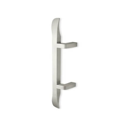 With its curved ends and square posts, the RM4282 SkewTek stainless steel offset door pull is a one-of-a-kind and distinctive pull for your entrance. Made from Stainless Steel material. Custom options for CTC from 6" (152.4mm) to 48" (1,219.2mm) overall length of 18" (457.2 mm) up to 60" (1,524 mm). This item is available in a variety of finishes; see options above.