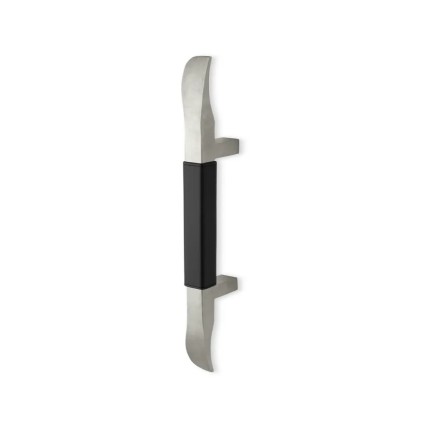 With its curved ends and square posts, the RM6121 SkewTek stainless steel straight door pull with leather grip is a one-of-a-kind and distinctive pull for your entrance. These items emphasize how the metal ends and posts blend seamlessly with the intricate leather grip. Custom options for CTC from 6" (152.4mm) to 48" (1,219.2mm) overall length of 18" (457.2 mm) up to 60" (1,524 mm). This item is available in a variety of finishes; see options above.