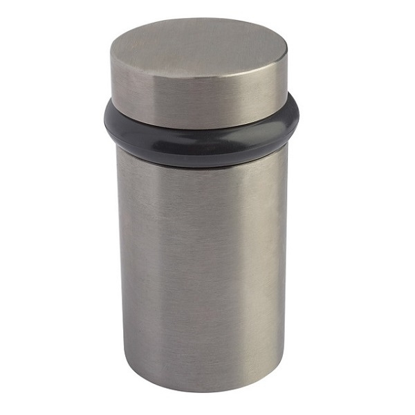 Rockwood Floor Mounted Door Stop with a Tall-Flat Top. 2-1/2" base and a projection of 1-1/4". Available in many finishes and with a black or grey bumper. Â Â Â Â Â Â Â