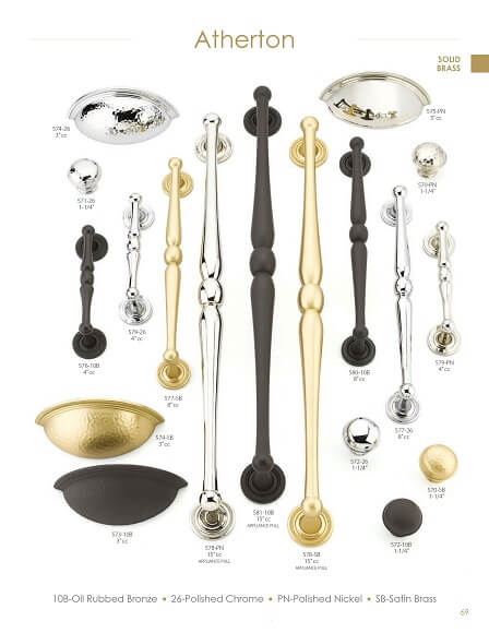 Schaub #570-10B Cabinet knob is part of the Atherton collection from Schaub traditional style series. Cabinet knob is made of solid brass and available in a variety of finishes. See description below for dimensions and finishes.