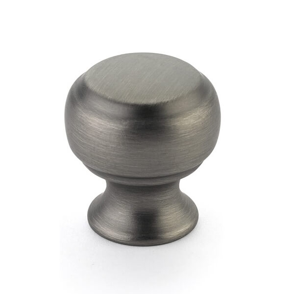 Schaub #63-AN Round cabinet knob is part of the Cabriole collection from Schaub traditional style series. Traditional style is inspired by 18th and 19th century designs, layered in color and texture. Traditional hardware bring a sense of history and glamour to a space.