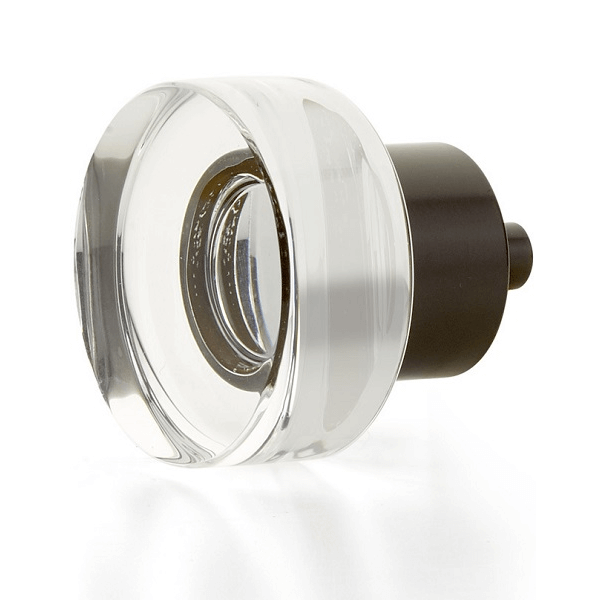 Schaub 56-10B Round disc glass cabinet knob, with an oil rubbed bronze finish is part of the City Lights collection from Schaub contemporary style series. See description below for dimensions and additional products and finishes in this collection.
