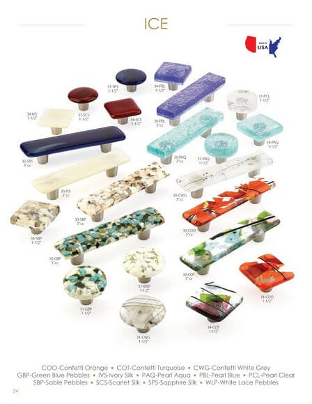 Schaub 34-COO Square knob, with a orange confetti finish is part of the Ice collection from Schaub contemporary style series. See description below for dimensions and finishes.