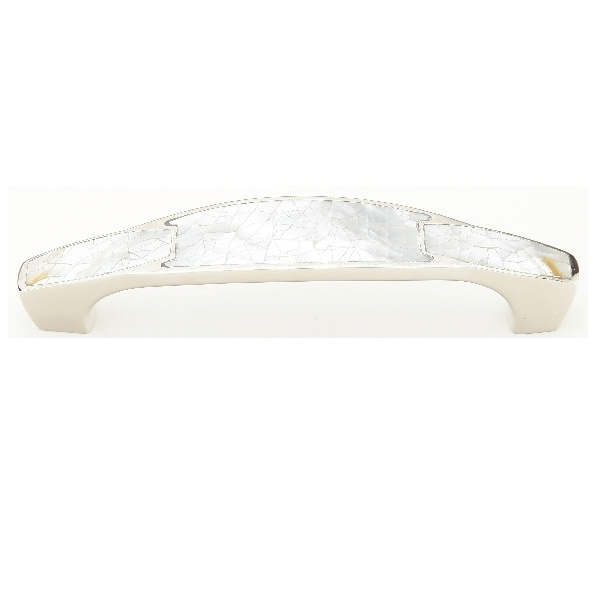 Schaub #992-MOP-PN Cabinet handle is part of the Mother of Pearl collection from Schaub Symphony Inlays style series. Handle is made of solid brass with a polished nickel and mother of pearl finish. See description below for dimensions.
