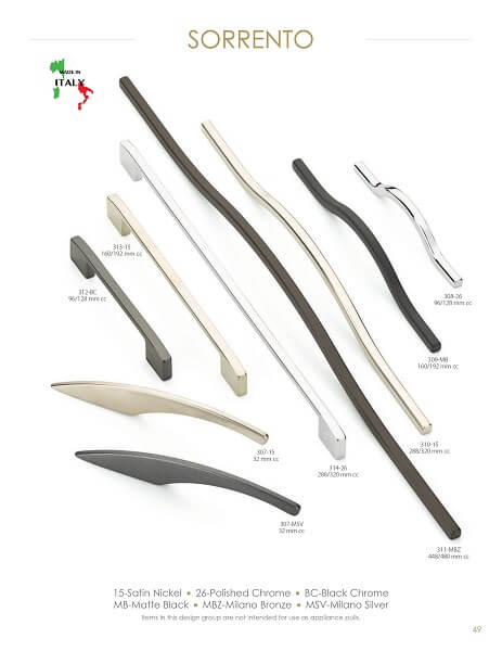 Schaub #308-15 cabinet pull is part of the Sorrento collection from Schaub contemporary style series. Contemporary style utilizes the materials and techniques of craftmanship of the 21st century to create a range of design aesthetics. Sophistication and beauty combine to create an alluring array of fine cabinet knobs, handles and pulls.Â