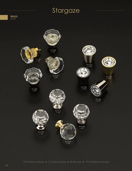 Schaub #71-C-03 Octagonal cabinet knob is part of the Stargaze collection from Schaub traditional style series. Knob is made of solid brass and available in a variety of finishes. See description below for dimensions and finishes.