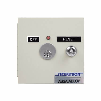 When an alarm occurs, the Securitron Fire Alert Reset Control communicates with a fire alarm unit to cut off power to devices downstream of the power supply. Until the FAR's Keyswitch is manually reset, the power remains off. Some jurisdictions mandate this function to keep people from inadvertently re-arming doors until the fire alarm is reset and the access control system's power is restored during an ongoing emergency.