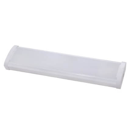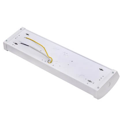 - Sleek modern white steel housing with frosted polycarbonate lens