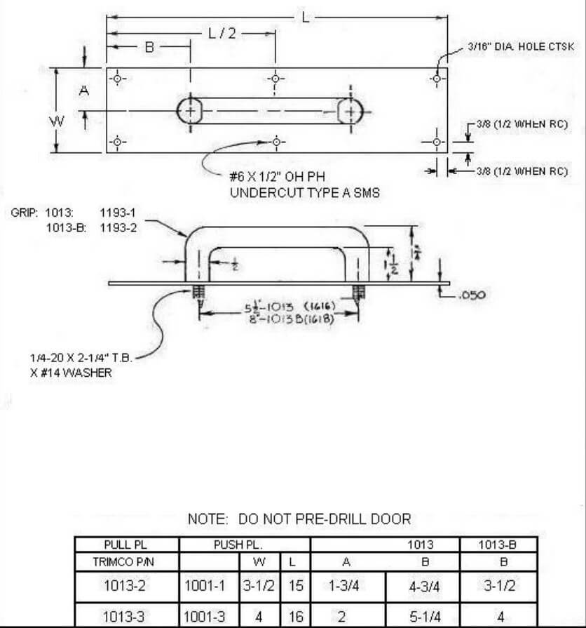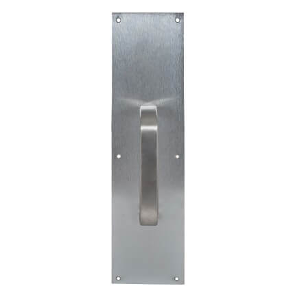 The Trimco 1013 Series 3/4 Round Pull Plates integrate a 1193 Series Grip with a 1001 Series Plate. These ADA-compliant pull plates are matched with a cast 5-1/2″ or 8″ CTC conventional pull and come in standard plate sizes of 3-1/2″x15″ and 4″x16″ . Available in a variety of finishes.