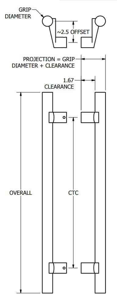 Trimco Standard Ladder Pull with Offset Standoff and Angled Ends, 1-1/4" Diameter