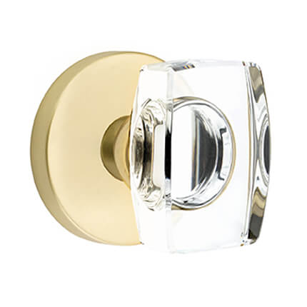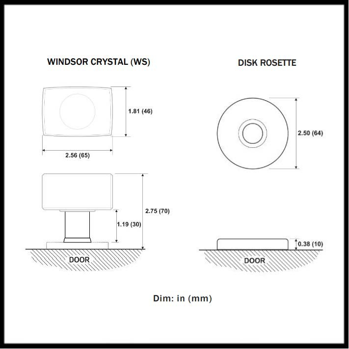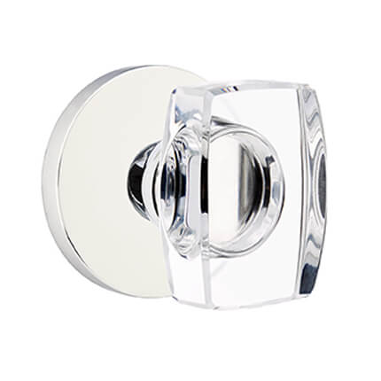This Contemporary doorknob is Crystal and will give any door a unique style. The Emtek Windsor Crystal Knob has a Disk Rosette and fits any door between 1-3/8” to 2-1/4" thick with a 2-1/8" bore standard door prep. Standard latch is for 2-3/8" backset. Includes Latch and Strike Plate. Available in a variety of different finishes.