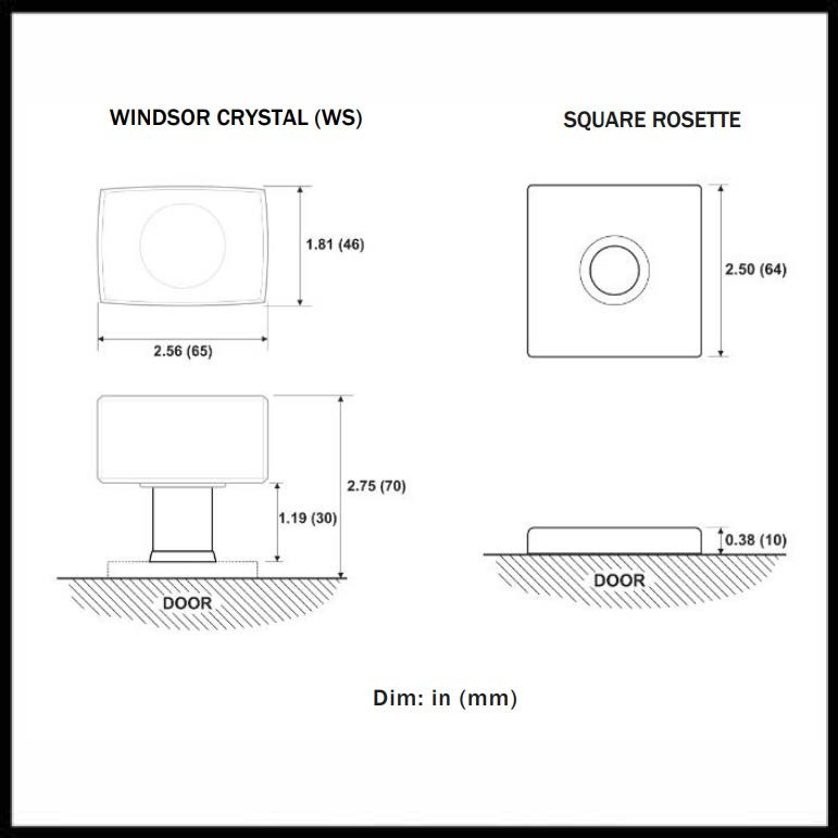 This Contemporary doorknob is Crystal and will give any door a unique style. The Emtek Windsor Crystal Knob has a Square Rosette and fits any door between 1-3/8” to 2-1/4" thick with a 2-1/8" bore standard door prep. Standard latch is for 2-3/8" backset. Includes Latch and Strike Plate. Available in a variety of different finishes.