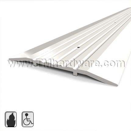 This Zero #544, 4" wide and 1/2" tall, doorway threshold creates a smooth transition between floor surfaces and eliminates dusts and drafts. It is wheelchair compatible and fireproof. It is crafted from a high quality aluminum to ensure ongoing superior performance. Custom cut to size.
